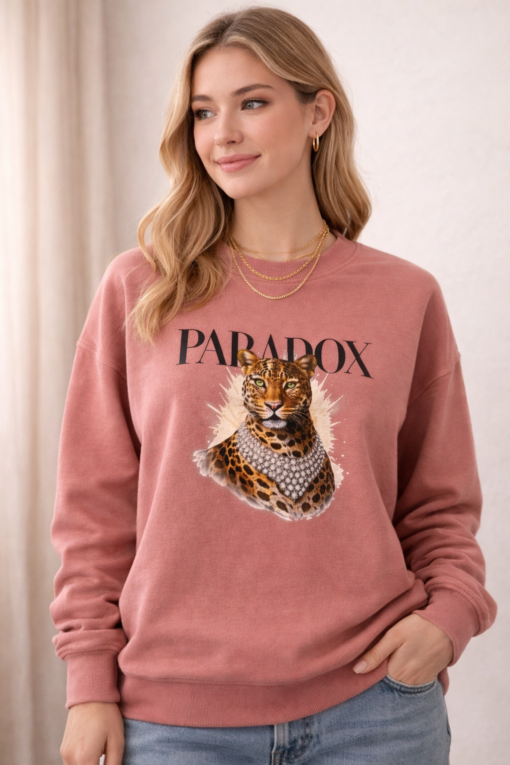 Bold meets effortless with our Paradox Luxe Leopard Crewneck. Featuring a striking leopard graphic layered in statement jewels and the signature Paradox logo, this sweatshirt brings fierce style to everyday comfort.